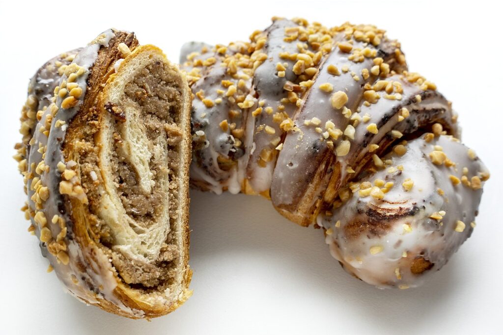 - Szneka z glancem – tradycyjna rolada z ciasta drożdżowego z nadzieniem z maku lub marmolady, często podawana z lukrem.